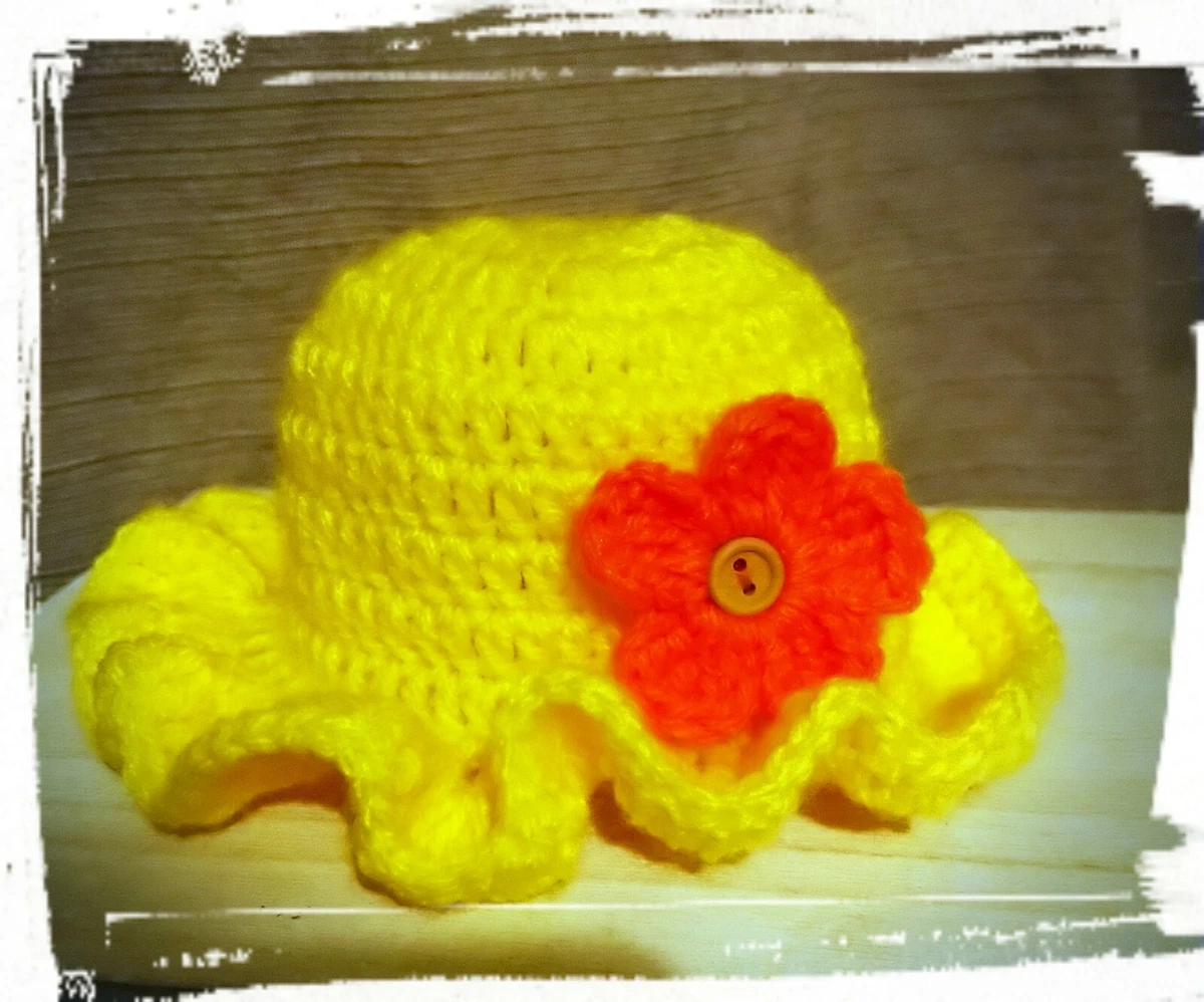 New Cute Handmade Crochet Baby 12 Months Daffodil Yellow Sun Hat Amp Flower Ebay